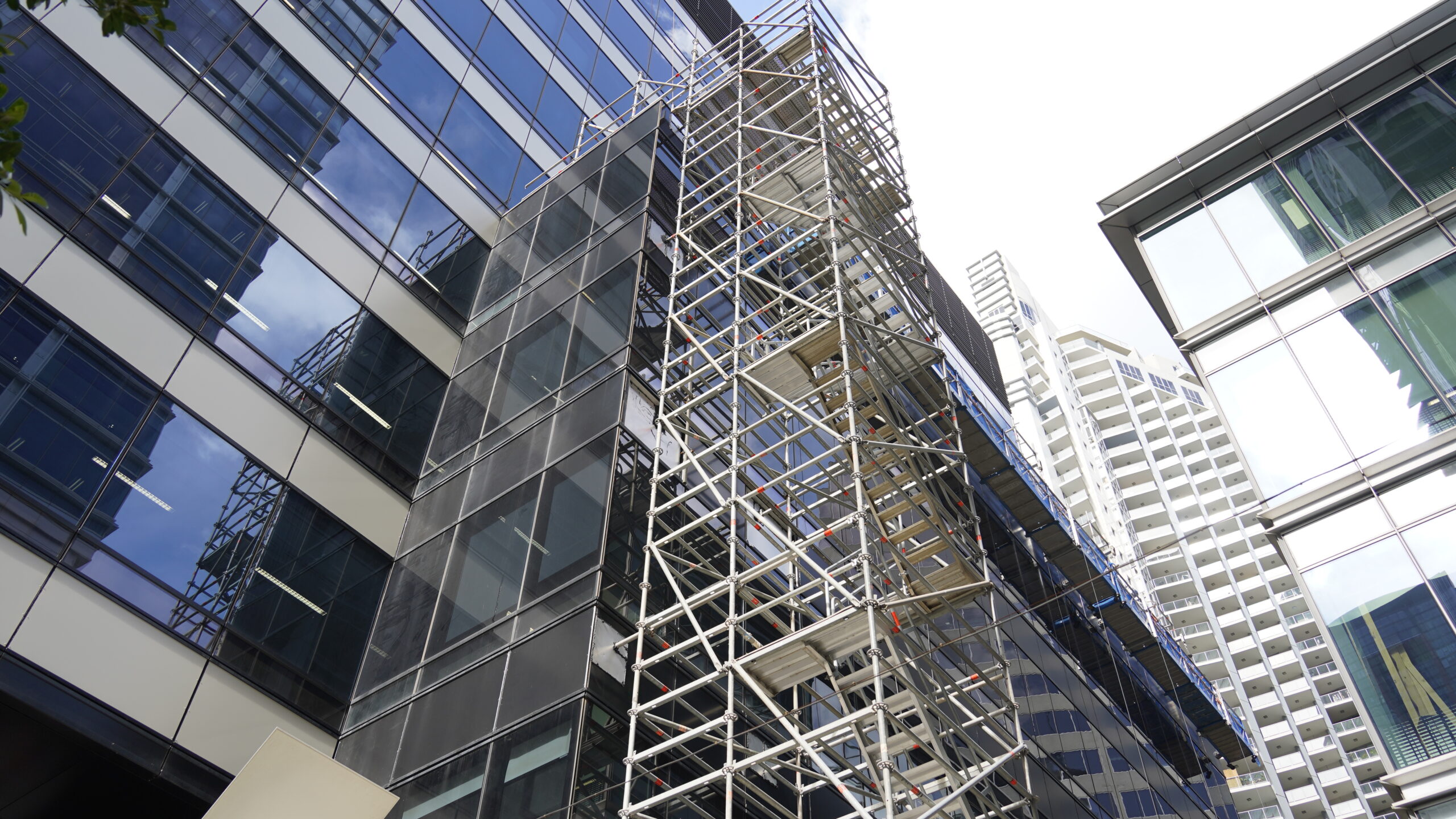 - Hanging scaffolding. Located 16 storeys above street level, the enclosed ‘Skybridge’ spanned two building facades. This bespoke engineering solution enabled workers to perform their tasks without harneseses, promoting free and confident movement.